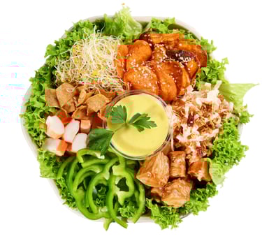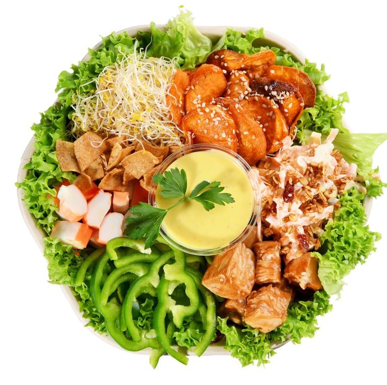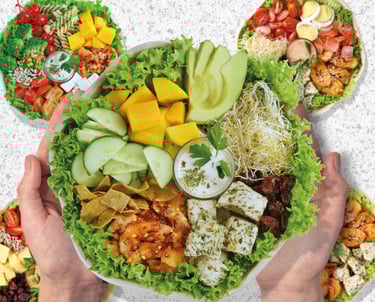Crea tu ensalada ideal con ingredientes a tu gusto.