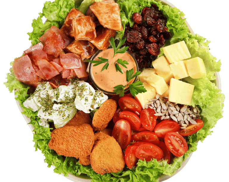 proteina: queso manchego, pechuga bbq, nugget de pechuga