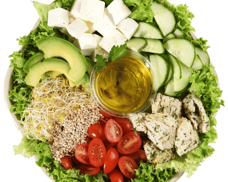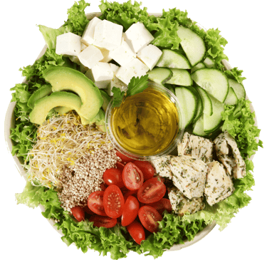 toppngs: jitomate cherry, germen de alfalfa, aguacate, pepino